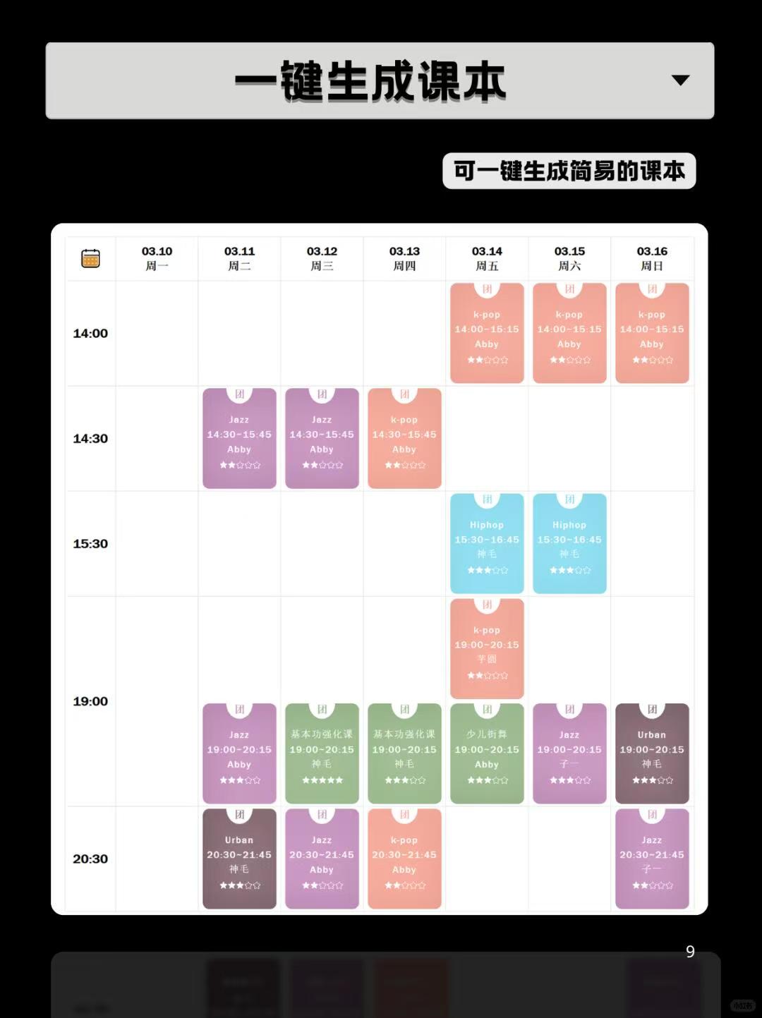 • 课表像日历,空白时段一眼看到,排私教不用再算格子。